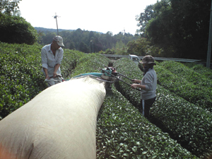 刈った茶葉は、このびよ~んと長い袋に入っていきます。