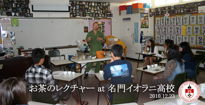 この日は、ハワイ市長なども輩出している名門イオラニ高校で、お茶についてのレクチャーをしました。