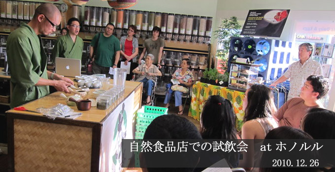 ホノルルのハワイカイタウンショッピングセンター内の自然食品店、ケールナチュラルフーズで26日試飲会を行いました。