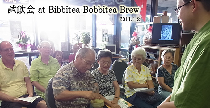 ハワイ島からオアフ島・ホノルルに戻り、この日は、ホノルルのcafe「Bibbitea Bobbitea Brew」にて試飲会を行いました。