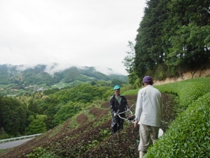 今週は新茶を収穫したばかりの茶園の中刈りをしました。