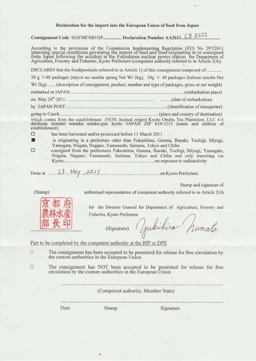 京都府より原産地証明書を取得しています。
