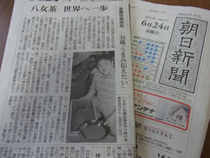 朝日新聞さまに、去る6月に国際茶園協会(ITFA)の一員としてワールドティーエキスポに参加した、栗原様の記事「日本茶のうまみ伝えたい」をご掲載いただきました。