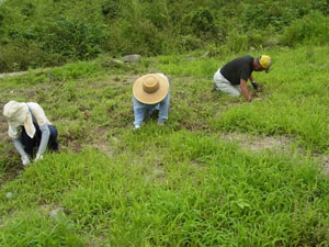 【8月1週の農作業】障害者支援センターあんの皆様と草引き。