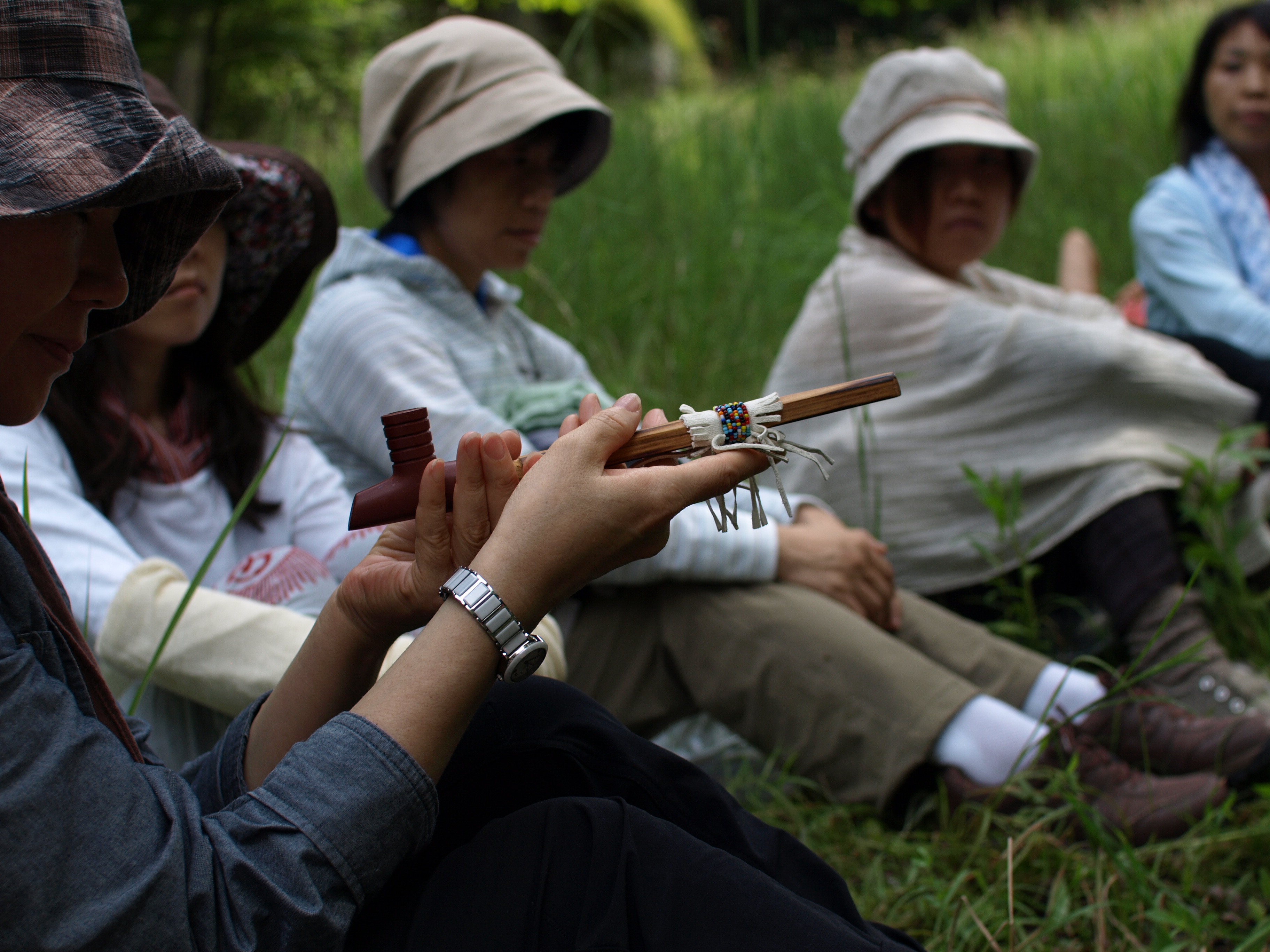 セイジの煙できよめ、タイ先生特製のハーブを詰めたパイプでパイプセレモニーを。