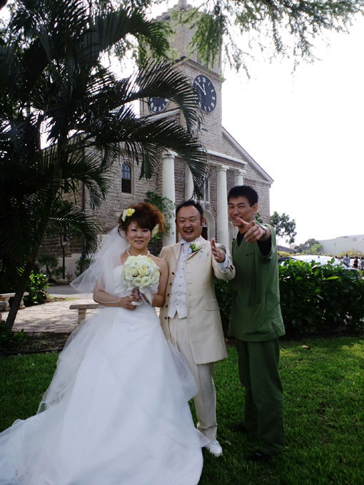 結婚式が行われたのは、ハワイで最も歴史のある教会、カワイアハオ教会。