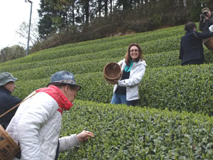 最初の体験は、お茶の手摘み。