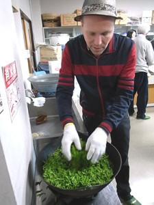 その後は、手もみでの製茶体験。