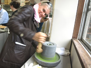 そして、とにかく盛りだくさんな今回のツアーでは、抹茶の石臼挽き体験まで!