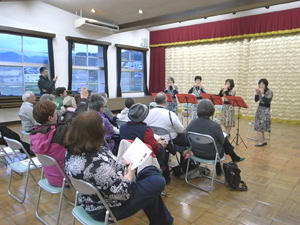 製茶が終わったら、ちょっと一息ついていただくため、別室にて地元のオカリナグループのみなさんの演奏を聴いていただきました。