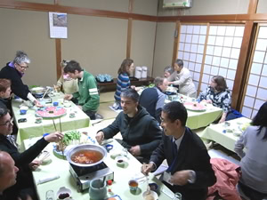 茶摘み・製茶体験後は、宿泊施設に移動して晩ご飯。